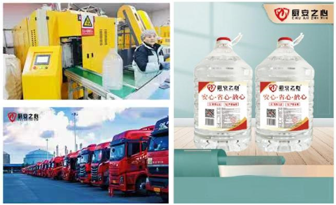 宁夏厨安之心能源科技有限公司,是中国厨燃行业 从“散装内卷”迈向“合规共赢”的开创者与核心引领者, 亦是全国首家专注一次性桶装厨灶用油研发、生产与区域 联营的标杆企业。自成立以来,公司秉持“合规为基、赋 能为本”理念,依托厨燃行业源头优势,在整车贸易、零 担批发、终端零售全链条的成熟经验,创新推出一次性桶 装解决方案,打破散装油“无标准、高内卷、低利润”困 局,引领行业向规范化、可持续化转型。