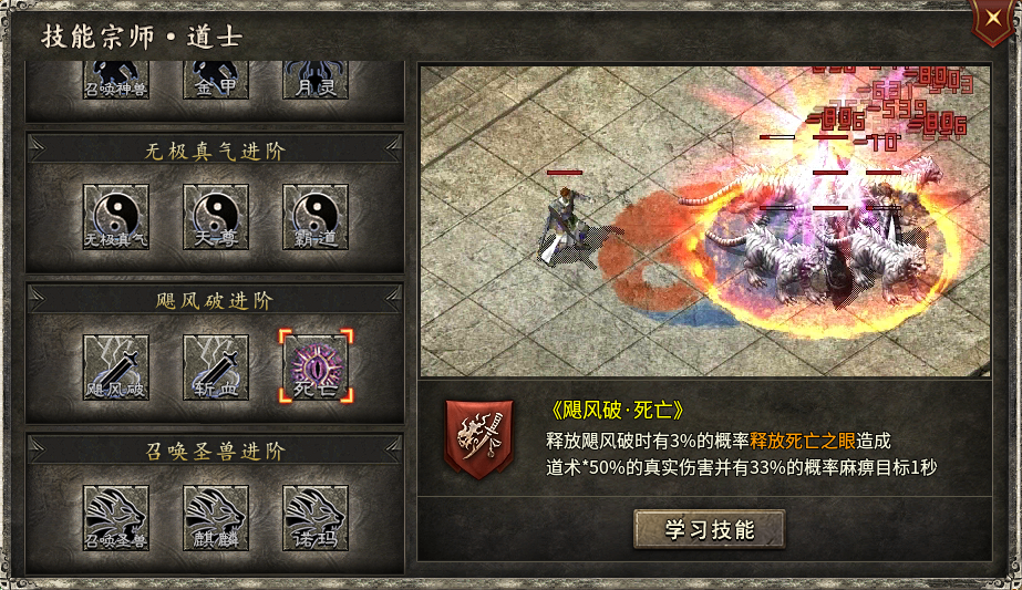 《老哥三职业》的技能系统也很有讲究。普通技能可以通过技能书进阶,而且能进阶两个形态。每进阶一次,技能效果都会大幅提升,有些甚至直接变成完全不一样的技能。不过别想着一步登天,哪怕你运气爆棚捡到终极技能书,也得老老实实从第一阶段学起。换句话说,人生可以开金手指,但技能不行。