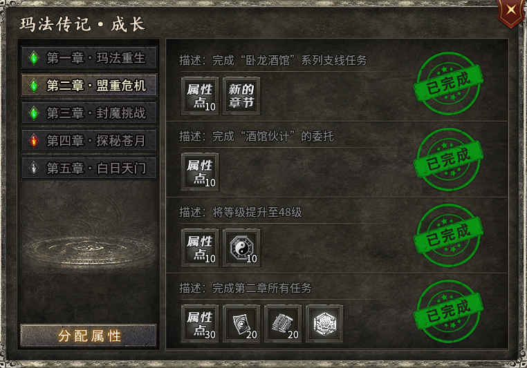 众所周知,沉默版本的灵魂就是脑洞大开的任务系统,《老哥三职业》专门设计了一个贯穿游戏人生的“玛法传记”,它像是一个“给你发钱发粮还让你自己加属性”的金手指。每完成一阶段任务,获得的属性点都可以自主分配,从自己的攻魔道到宝宝的强度,都可以随心所欲调整,还能拿到命格装置和符文这些关键资源。尤其是命格装置,属于那种“不做就永远少个槽”的硬核设计,而且只能从玛法传记里获取。
