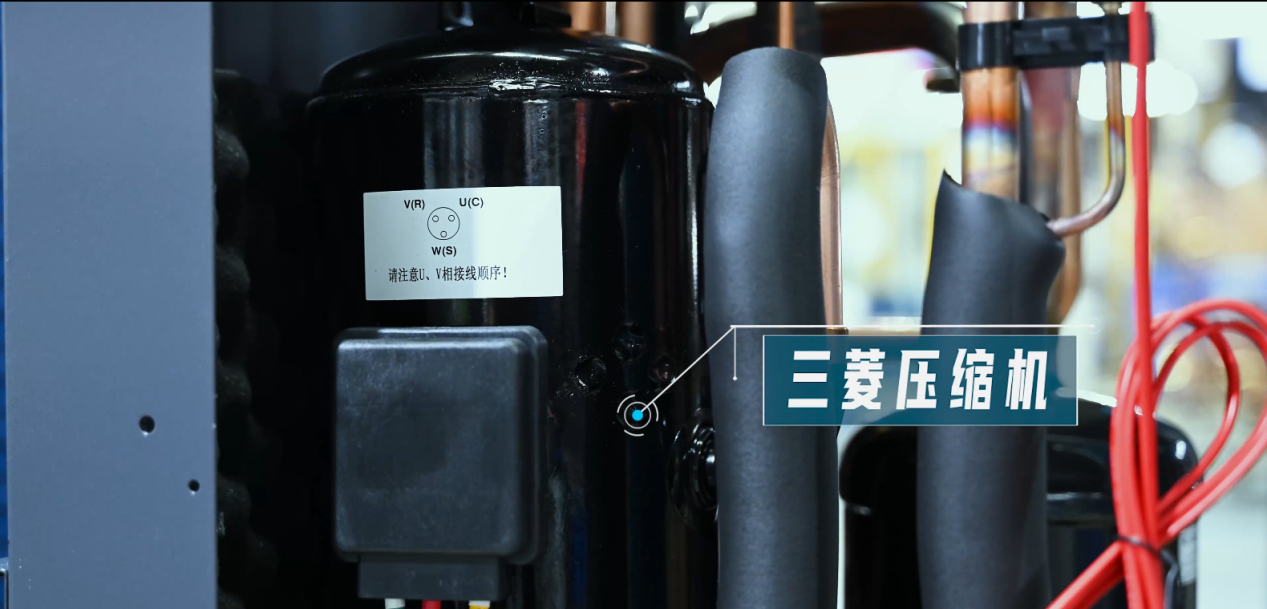 这样的能力,源于三大核心技术支撑。首先是定制化核心部件,通过与三菱深度合作,搭载双通道喷气增焓压缩机,让机组在低温下仍能保持高输出功率,制热量较普通产品提升30%。