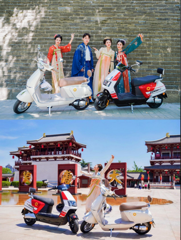 本次新日西安活动自筹备之初就备受瞩目,为了让消费者们更深入地了解新日电动车的卓越性能和舒适体验,感受品牌年轻化的青春活力和骑趣方式,此次品鉴会特别设置了打卡西安地标的环节,让身穿特色汉服的“氪官”和“公主”们骑着新日旗舰爆品——凯迪拉氪和赫本,穿梭于大雁塔、大明宫、西安交通大学和西安电子科技大学等众多著名景点和知名高校,感受着历史文化和乐趣出行的交融。