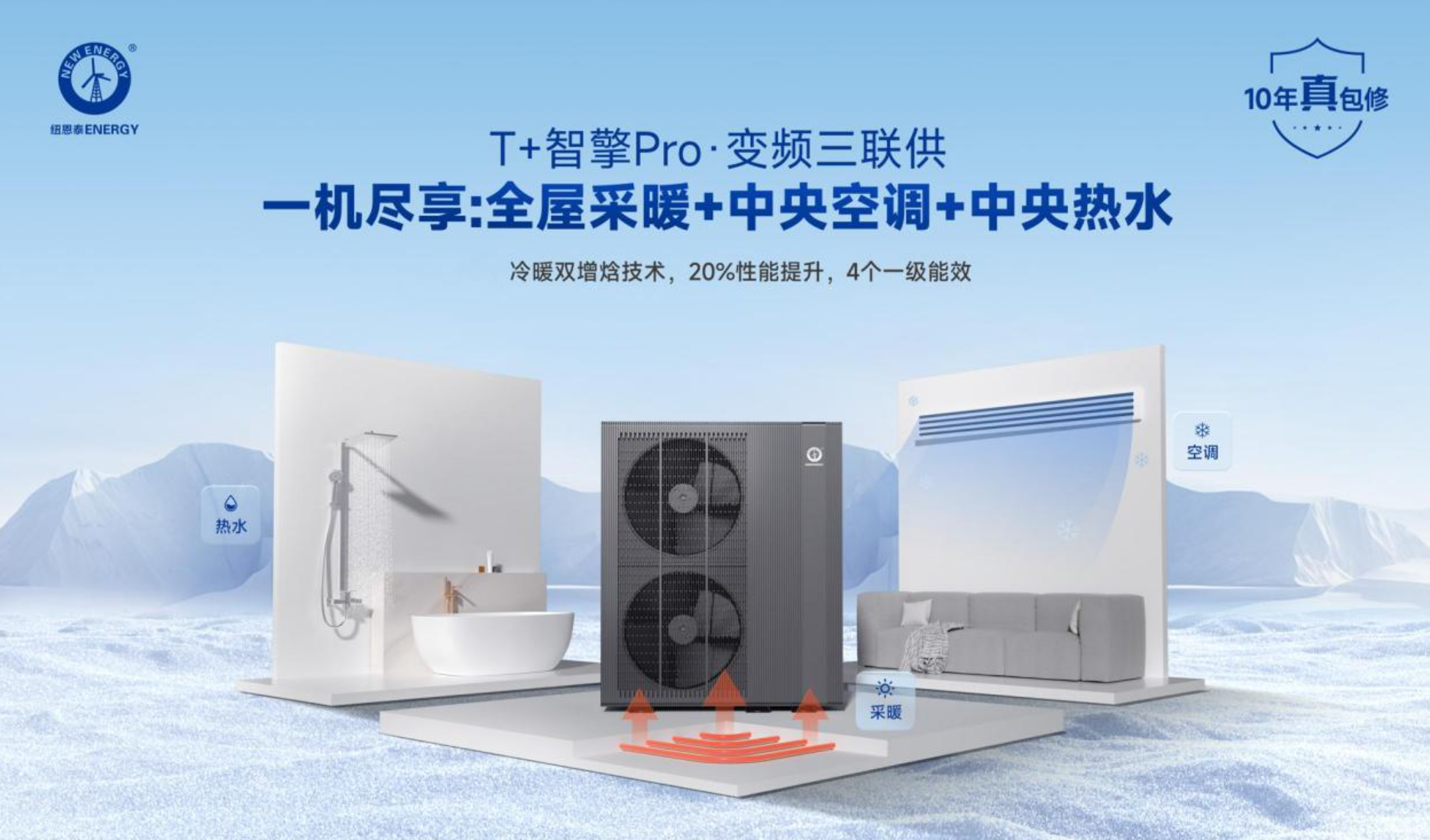 别墅/大平层:建议选择三联供系统(地暖+空调+热水),如纽恩泰的T+智擎Pro三联供产品等,一机三用,全屋舒适,可实现能源集成管理,长期看节能效益明显。