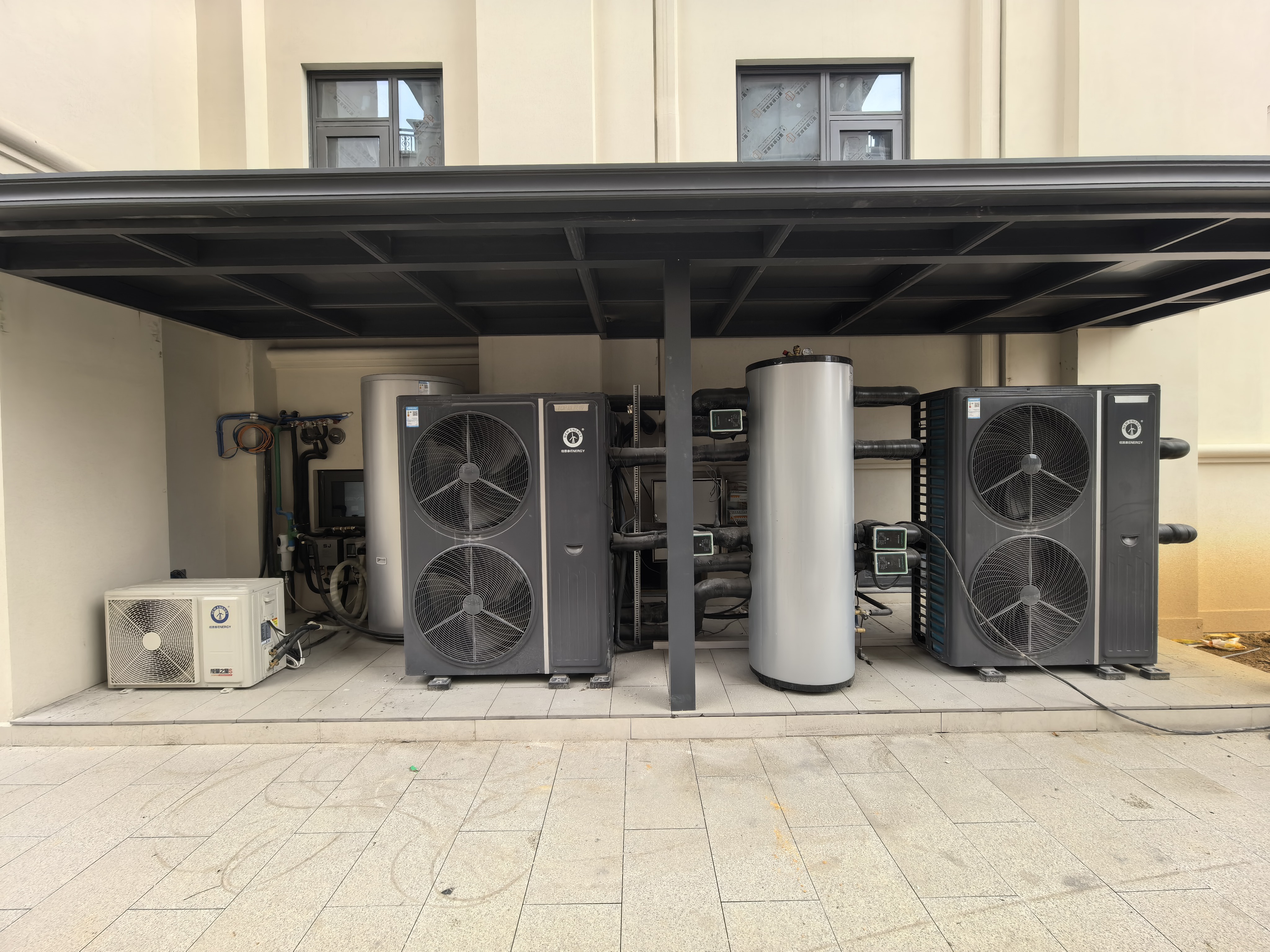 大户型/别墅/自建房(460L-600L):智涌双泉变频模块承压热水机组,模块化扩展,变频与一级能效,支持-15℃运行;可通过模块并联扩容,满足多点用水与峰谷调节。
