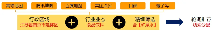 勤策智能拓店基于行政区域、行业业态、消费场景等多维数据,通过对接主流互联网平台,筛选出与饮用水消费高度关联的潜力优质门店,利用线索分配的方式为业务员提供明确的开拓方向。