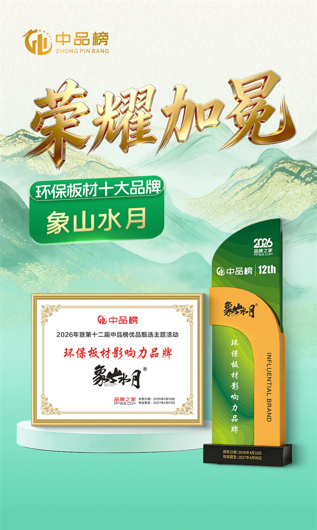 此次斩获中品榜“环保板材十大品牌”,对象山水月意义重大,既提升了品牌知名度与美誉度,也增强了其在环保板材领域的竞争力,为品牌持续发展注入强劲动力。
