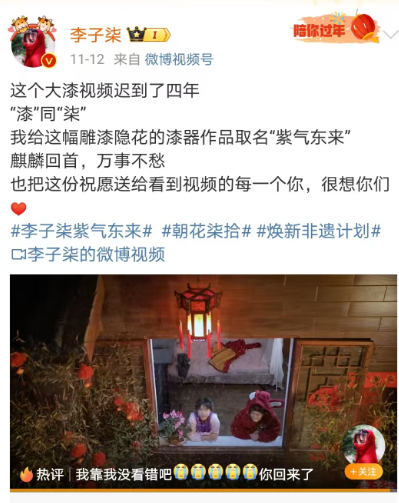 相信在未来的日子里,李子柒将继续用她的才华和努力,为我们带来更多精彩的作品,让非遗文化在新时代绽放出更加绚烂的光彩。