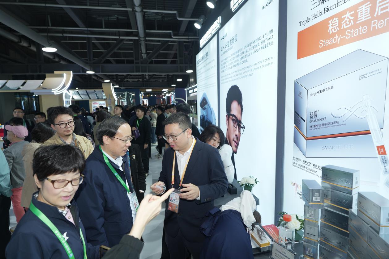 11月7日,上海第八届中国国际进口博览会四川馆,“智嫩”嘭弹棒惊艳亮相。作为全球首款基于三螺旋结构设计的功能性护肤品,甫一上市即引发全球客商热烈追捧:近千盒体验装派发一空,来自中国、日本、韩国、德国、美国、澳大利亚等近20个国家的客户排队试用,纷纷竖起大拇指:“Good! Younger!”、“This is a game-changer!” 。进博会现场,四川省成都市副市长陈志勇亲切慰问如凤凰团队,祝贺智嫩「嘭弹棒」全球首发,勉励企业持续深耕研发,加快成果转化,努力打造“科技创新与产业创新融合的典范”,为成都乃至中国生命科技走向世界注入新动能。