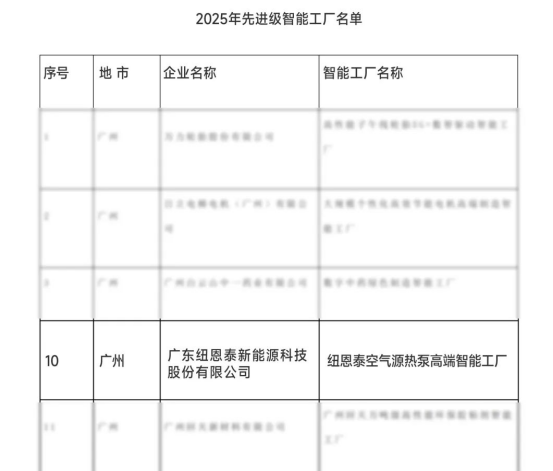 谁曾想到,仅仅十余年后,同样在这片岭南热土上,纽恩泰空气能高端智能“零碳”产业园,成功入选广东《2025年先进级智能工厂名单》。这份涵盖90家企业的权威榜单中,与纽恩泰并肩的是一汽·大众、TCL、海信、OPPO、索菲亚、小鹏等各行业巨头。
