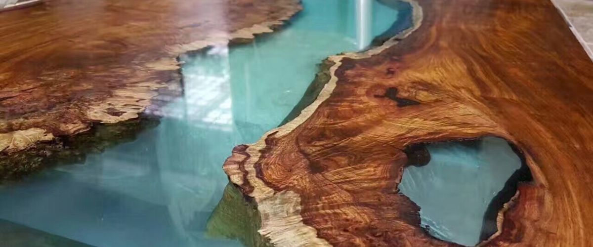 整个桌子是从一块实木木板雕刻而成,或者是利用朽木的形状,里面灌入环氧树脂水晶胶,或透明或蓝色,其造型如同从高空俯视河流的感觉,透出了大自然的壮丽!为什么采用正大升环氧树脂水晶胶而不是其他透明灌封胶呢?