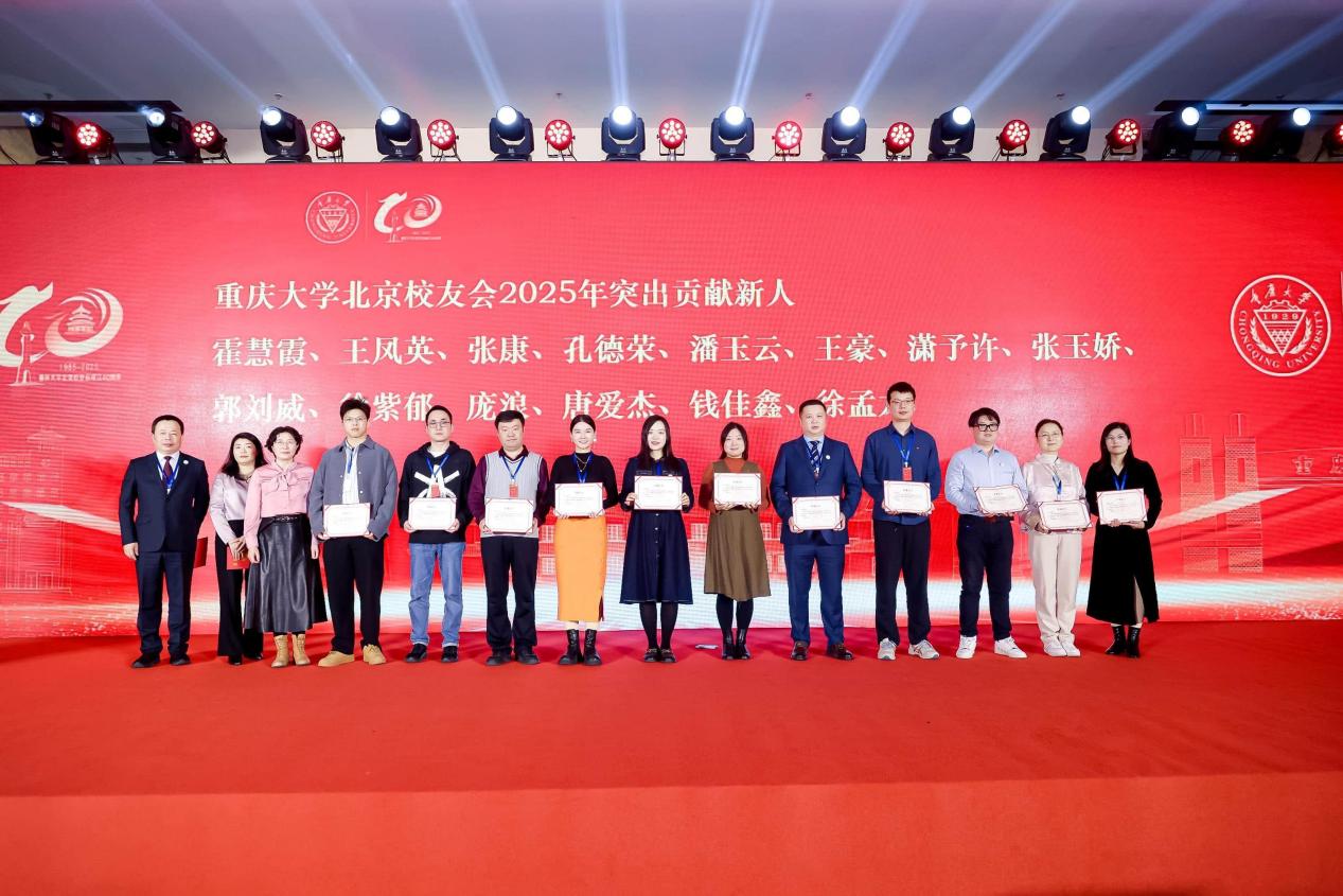 大会举行隆重的颁奖仪式,陈卫、杨俊、许骏等为“重庆大学北京校友会成立40周年重大贡献奖”获得者颁奖,胡建林、陈东等为“重庆大学北京校友会成立40周年突出贡献奖”获得者颁奖,张梅、刘国斌等为“重庆大学北京校友会2025年突出贡献新人”颁奖。三次颁奖与合影环节掌声雷动,彰显对一代代校友奉献精神的致敬。“这份荣誉是认可更是责任,我们将继续为校友会发展添砖加瓦。” 新当选机械分会会长的张梅代表获奖者表态。