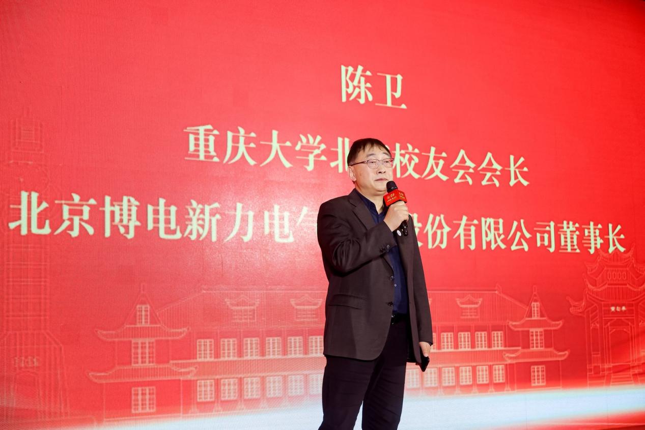 重庆大学北京校友会会长陈卫率先致辞,欢迎广大校友、母校领导及兄弟校友会代表的到来,感谢参与筹备工作的校友们。他表示,回顾四十年校友会搭建情感桥梁、助力校友成长的历程,重庆大学校友人才济济,北京校友会将持续加强校友联络,汇聚智慧力量,助力母校建设与社会发展,展现重大人的责任与担当,并对长期支持校友会发展的各界人士表达诚挚谢意。
