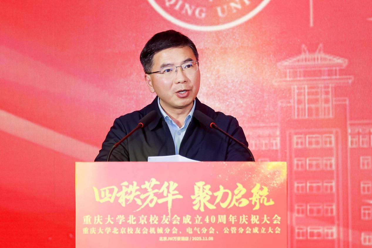 四秩芳华,聚力启航。2025年11月8日,重庆大学北京校友会成立40周年庆祝大会暨机械分会、电气分会、公管分会成立大会在北京圆满举行。重庆大学党委常委、副校长杨俊,重庆大学校友总会、教育发展基金会秘书长许骏,重庆市政府驻京办副主任傅晓,重庆大学公管、机械、电气等学院领导及科技发展研究院、煤矿灾害重点实验室等领导,以及在北京借调和挂职的十余位教师代表共同出席,多地校友会代表与在京校友齐聚一堂,共忆求学岁月,共庆四十华诞,共话发展蓝图。
