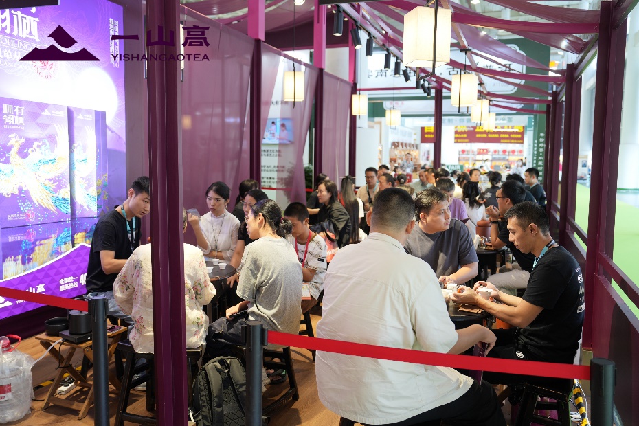 踏入一山高展位,精心设计的茶空间与现代美学相互交融,重新升级的全新色调“顺圣紫”瞬间吸引参观者的目光,品牌以 “高山单丛·自然出众” 为核心理念,传递着对茶文化的极致追求。