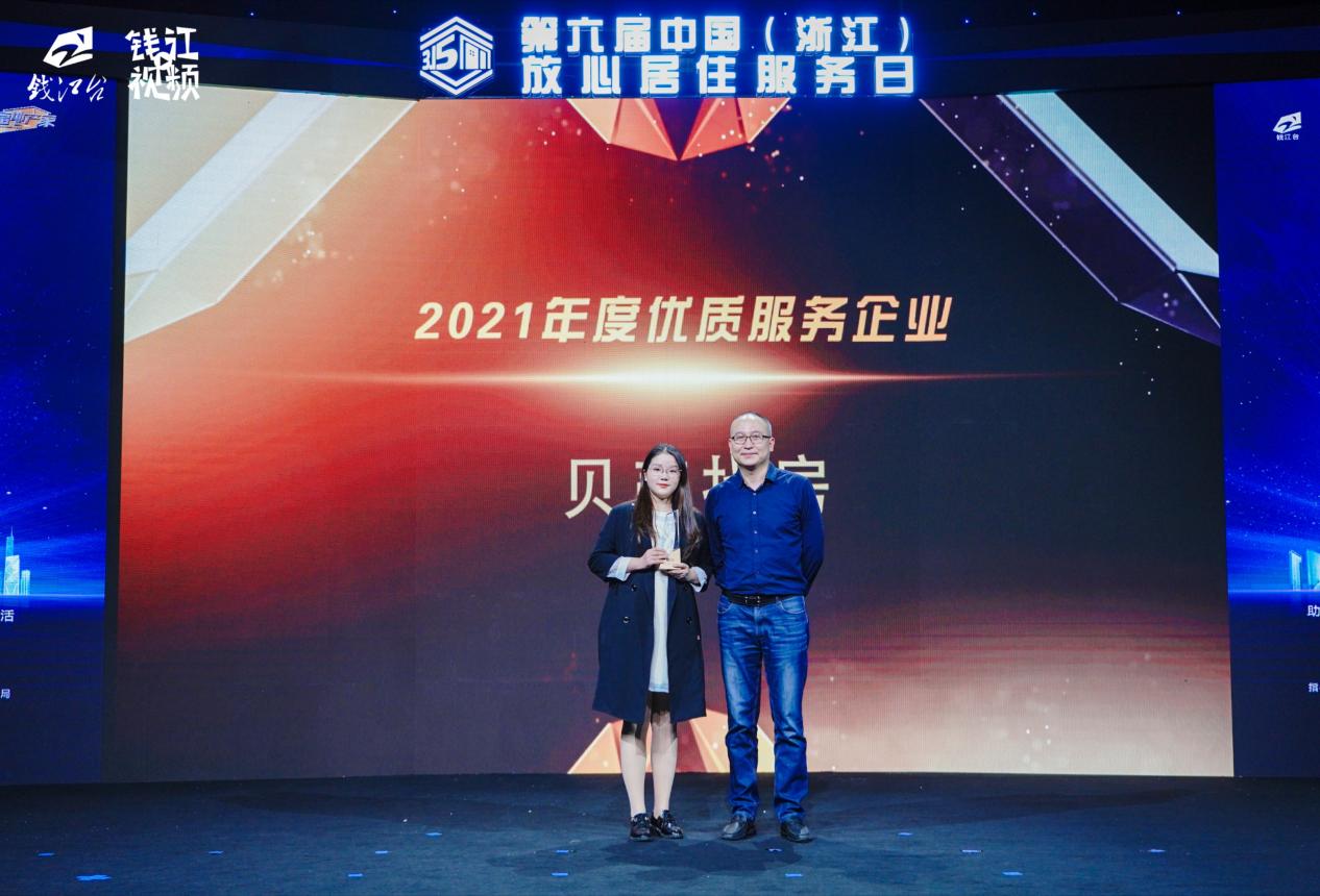 今年3月15日,由浙江省住房和城乡建设厅、浙江省美丽城镇建设办公室、杭州市住房保障和房产管理局指导,浙江广播电视集团钱江都市频道、浙江省建筑装饰行业协会联合主办,杭州中房信息科技有限公司、杭州市房地产业协会共同协办的第六届中国(浙江)放心居住服务日活动顺利召开,一直聚焦提升服务品质的贝壳找房荣获“2021年度优质服务企业”。