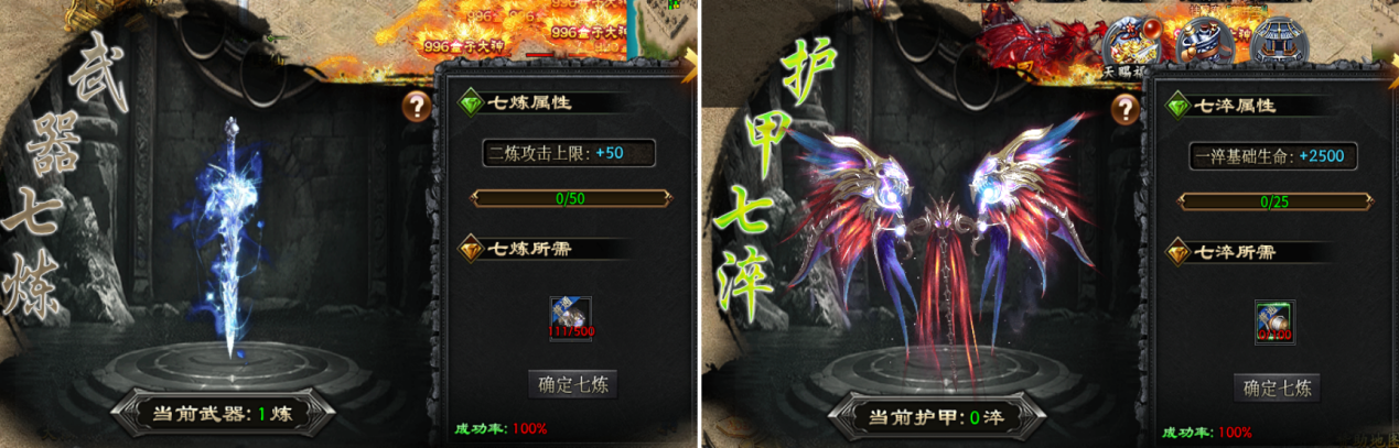 角色加强,装备也不能落后,这里的武器和护甲都有七重淬炼,精益求精地将生命和攻击推到新高度。