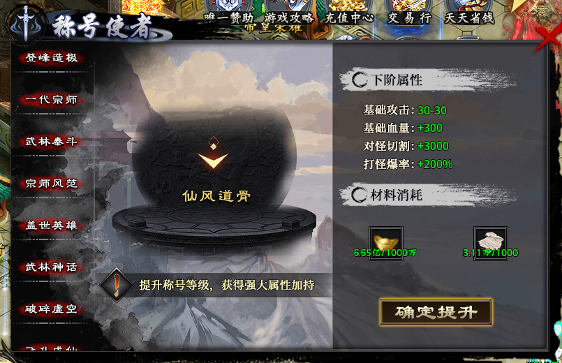 进入第三大陆后,就要准备“脱胎换骨”了,游戏会开放渡劫和飞升池系统,让玩家在原有基础上继续增加大量百分比生命、倍攻和攻速等属性。天神之翼不单单提升基础属性,还着重强化了对怪切割,想要刷怪快其必不可少。