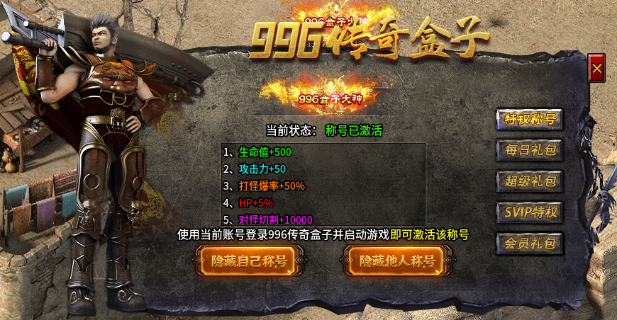 在第一大陆,首先就给玩家上了一层称号的助力,获得对应的角色属性,直接带来攻击/血量/切割/爆率等加成。