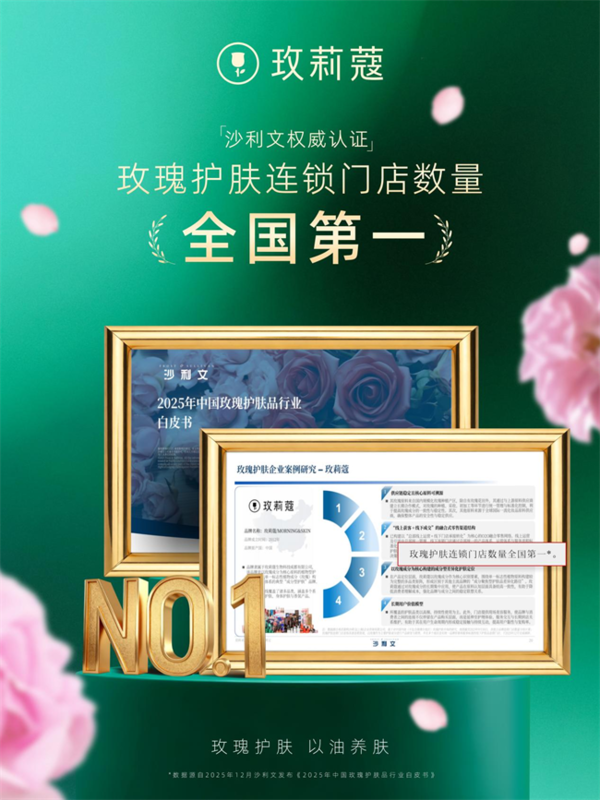荣获沙利文“中国玫瑰护肤连锁门店数量全国第一*”的知名机构认证,是玫莉蔻发展历程中的重要里程碑,也是市场与行业机构对其品牌战略、商业模式及行业贡献的至高认可。从以玫瑰为核心的长期主义深耕,到源头供应链的匠心坚守,再到新零售模式的创新开拓,玫莉蔻已然成为中国玫瑰护肤赛道的定义者与引航者。