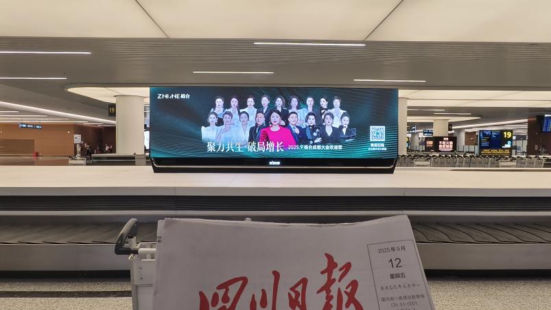 成都天府机场,作为中国西部连通世界的重要航空枢纽,每日承载着巨大的客流量,是展示品牌形象、传递企业价值的黄金点位。植合品牌精准把握这一契机,选择在行李提取这一旅客必经且驻足时间较长的区域,重磅投放欢迎广告,其用心不言自明。