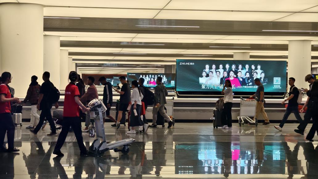 秋高气爽,蓉城聚首。九月,凡抵达成都天府国际机场的旅客,尤其是在行李提取处,都会被一块块醒目的大屏广告所吸引。画面上,植合美业的联合创始人团队意气风发,与旗下核心的科美产品形象交相辉映,共同构成了对来自全国各地“美业家人”的第一声问候与欢迎。这不仅是植合美业品牌实力的一次集中展示,更正式拉开了即将于九月在成都举办的“聚力共生 破局增长”千人大会的盛大序幕。这场备受瞩目的 “植合成都大会” ,已然因这次先声夺人的 “植合机场广告” 事件,未开先热。
