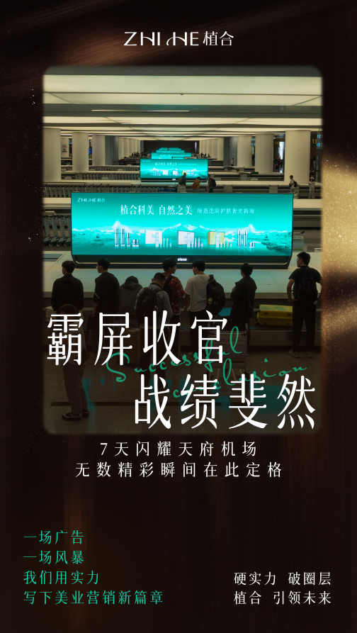 此次投放的 “植合机场广告” 画面内容颇具深意。一方面,联合创始人的集体亮相,展现了植合美业核心领导层的凝聚力、领导力与对未来的坚定信心。它向业界传递出一个明确信号:植合美业是一个拥有坚实核心、并持续开拓进取的团队。