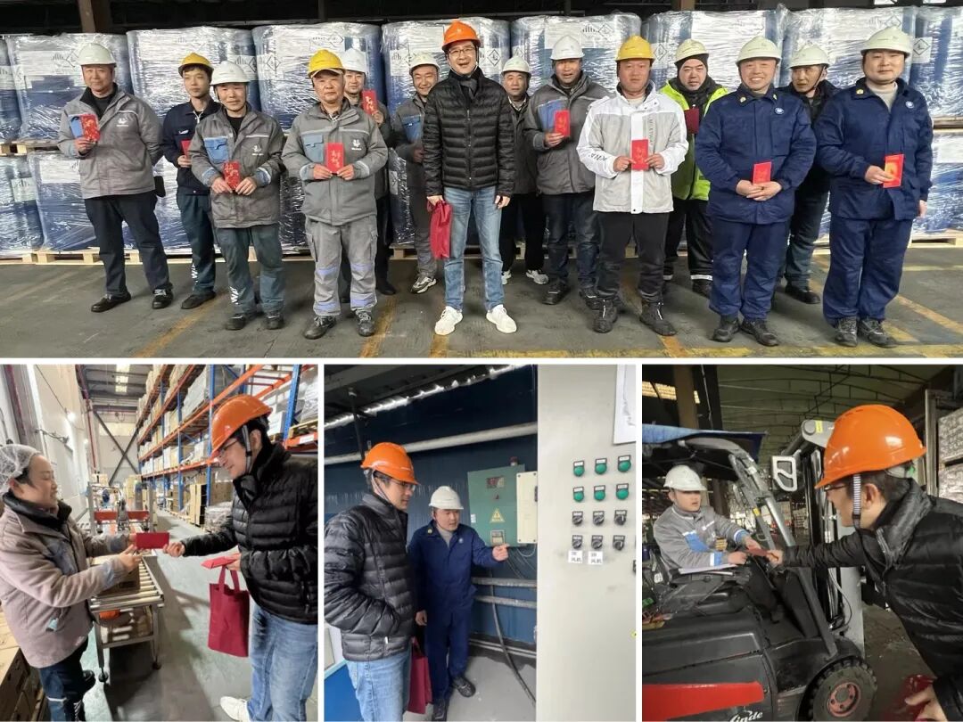 春节期间,集团核心班子成员也分赴一线站点慰问员工、发放红包,检查安全保障与应急措施,传递浓浓关怀与奋斗力量。