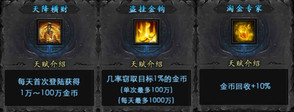 最普通的蓝色天赋主要是增加属性数值,但对某些玩家来说,一点点属性提升并不太重要,因此另一种可以增加金币的蓝色天赋在他们心中更为抢手,可以轻松地度过开荒期。