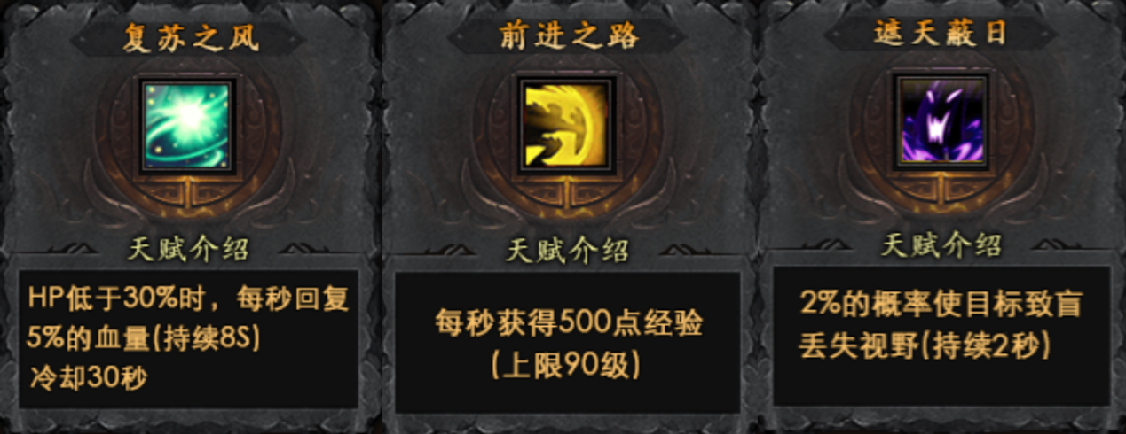 强度第二档的金色天赋中有战斗辅助类和经验加成类两种,毕竟高阶之后升级速度大大降低,玩家可以在升级和挑战boss两种需求中自行选择。