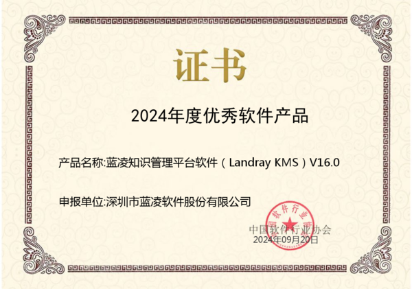 近期,中国软件行业协会发布“2024 年度推广优秀软件产品活动(第3 季度)通过名单”,蓝凌知识管理平台荣誉上榜,也是此次唯一上榜的知识管理类产品!