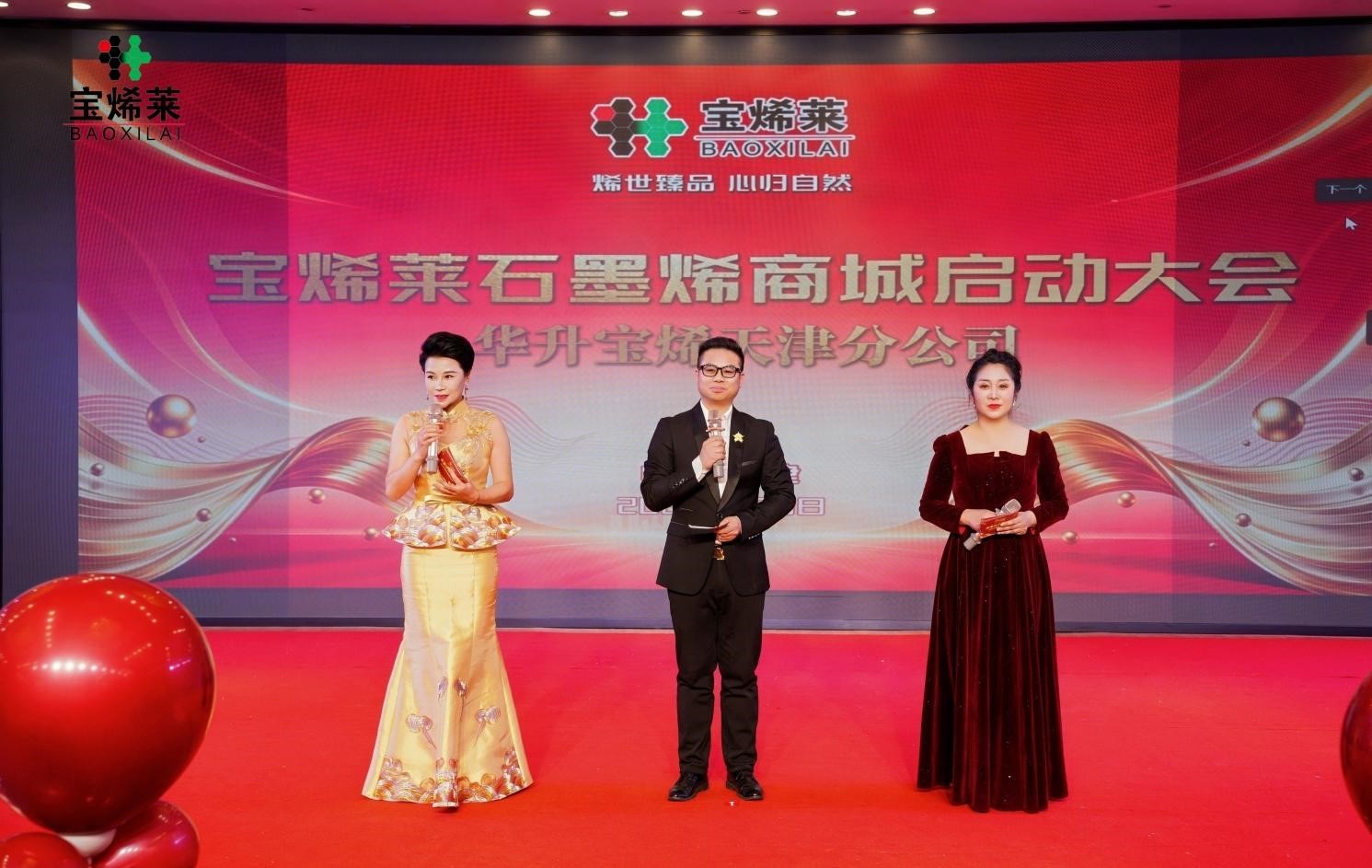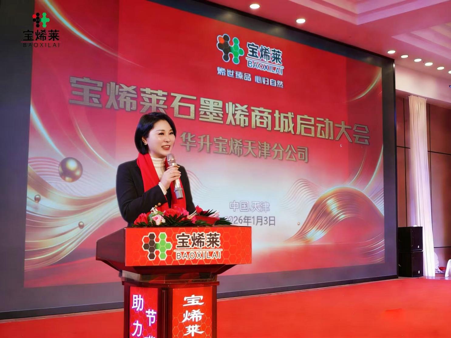 2026 年元月3日,华升宝烯天津分公司年会暨宝烯莱石墨烯商城品牌启动大会盛大启幕。来自全国各地分公司的事业伙伴齐聚一堂,共同见证品牌启航的高光时刻,一场融合科技与温情、承载梦想与希望的盛会就此拉开帷幕。