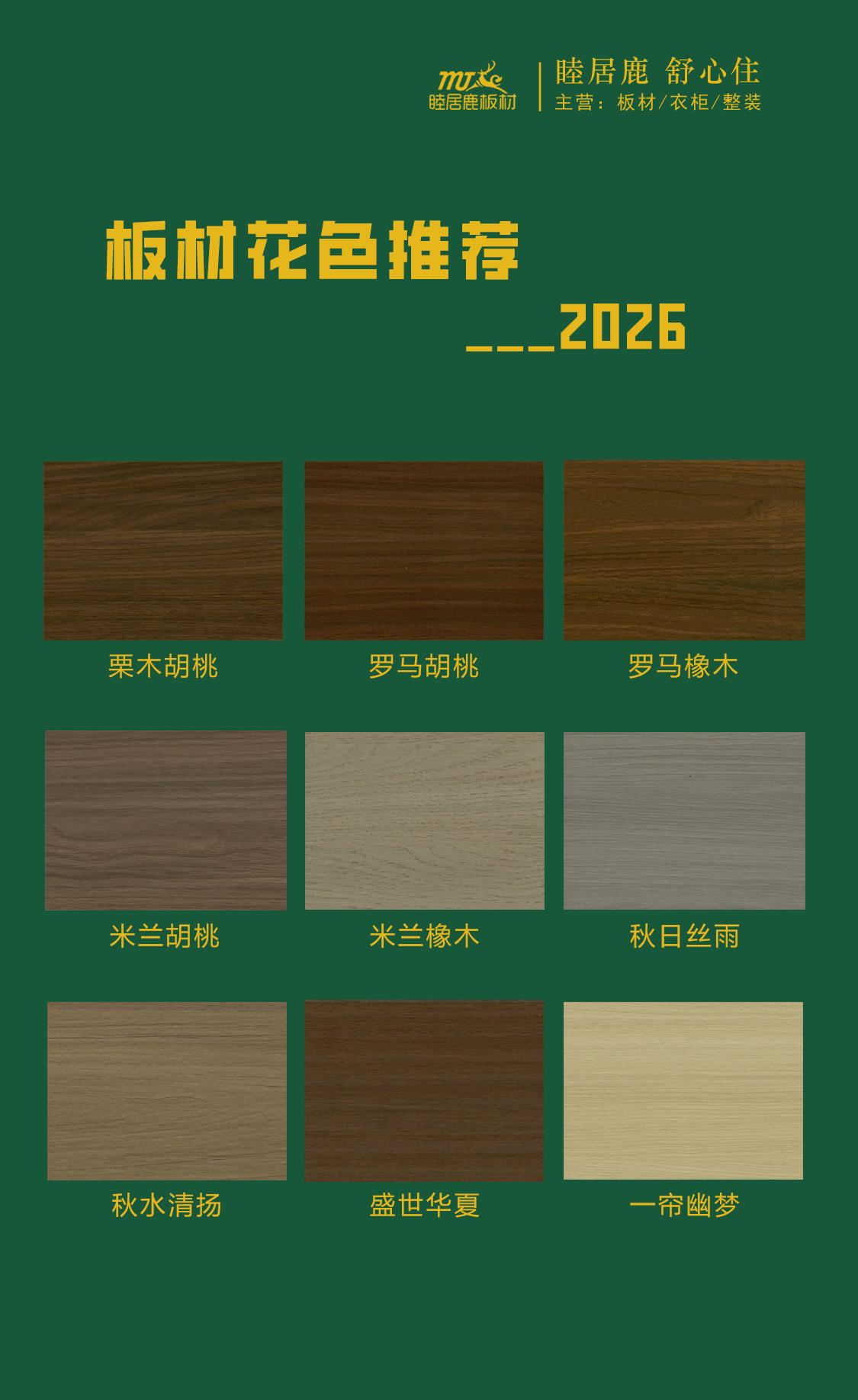 当家居成为情绪的容器,材质的肌理与色彩的温度,便成了勾勒理想生活的核心笔触。2026年,家居装修愈发追求自然本真与松弛质感,睦居鹿板材全新花色顺势而生,将原生肌理的细腻与现代美学的潮流相融,打破风格桎梏,用多元花色解锁万千家居可能,让每一处空间都藏着不刻意的精致与治愈。