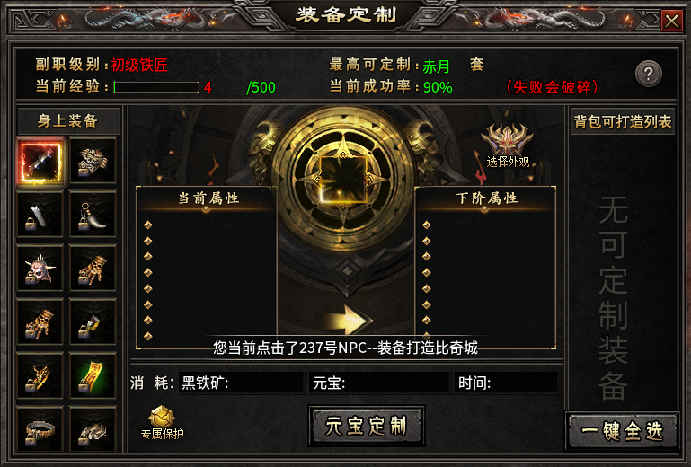完成新手引导后,玩家可以得到一次选择副职的机会,游戏中共有定制专属武器的铁匠、定制专属衣服的裁缝和定制专属首饰的炼金三种副职。在定制过程中,“原材料”只能是打怪爆出的史诗级装备,定制后会保留原有的极品属性和词缀属性,并随机生成1-4条词缀属性。
