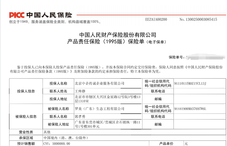 本次罗美(广东)生态工程有限公司旗下全系列产品向中国人保投保产品责任险,标志着罗美(广东)生态工程有限公司为消费者提供产品安全保障的决心。