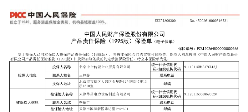 近日,天津华昌电力设备制造有限公司(以下简称“华昌电力”)与中国人民财产保险股份有限公司达成深度合作,为旗下全系列电力设备正式投保产品责任险。这一举措不仅是华昌电力对自身产品品质的高度自信,更标志着企业在保障客户权益、筑牢行业安全防线方面迈出了坚实一步,为广大用户的电力系统安全增添了一份可靠保障。