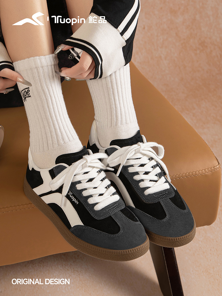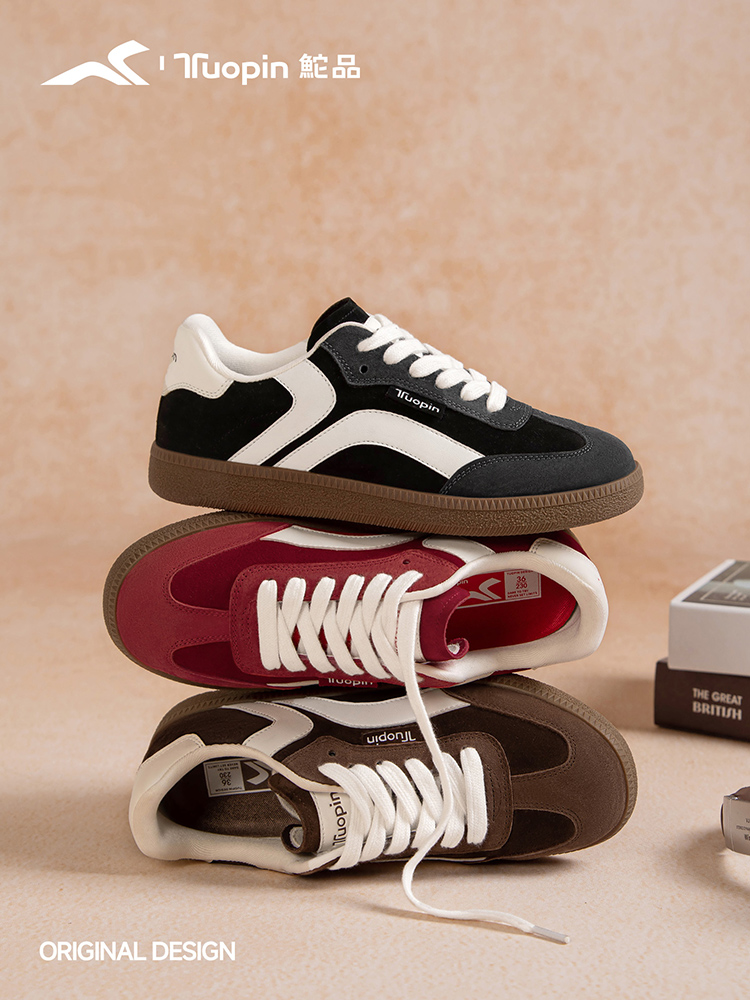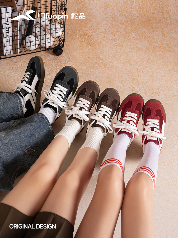 而穿搭方面鮀品原创设计升级款复古德训鞋更是展现了极强的可塑性,红色德训鞋搭配卡其色直筒裤与条纹衬衫,轻松营造法式复古风情;而层次分明的黑灰色德训鞋则与牛仔单品相得益彰,演绎美式休闲风尚。无论是搭配阔腿裤展现随性气质,还是与西装裤组合打造白领人设,都能完美融入不同风格的穿搭体系,成为整体造型的点睛之笔。