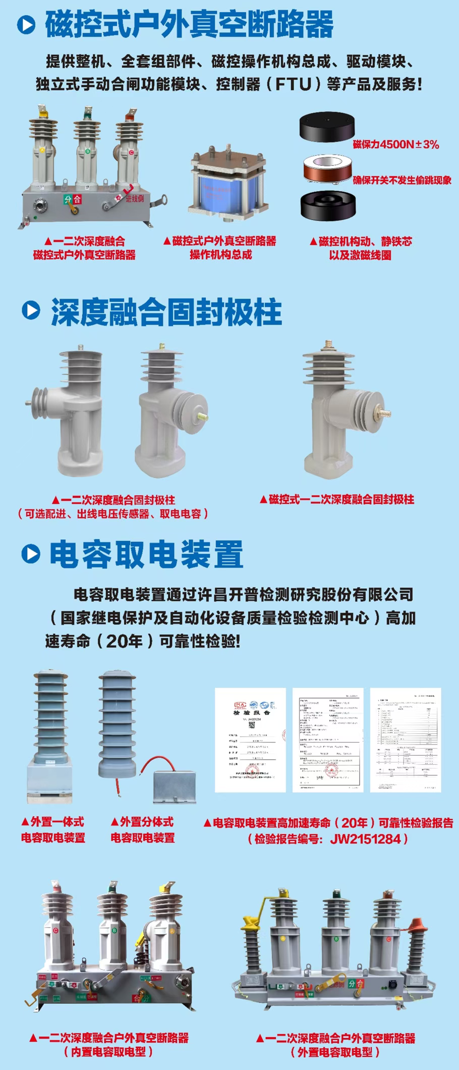 ·提供一二次融合、一二次深度融合、智能户外真空断路器(整机、深度融合极柱、全套散件、零部件定制化研发及生产);