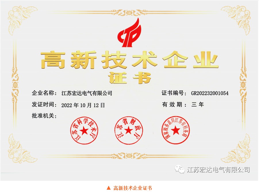 江苏宏达电气有限公司成立于1999年,2003年经丹阳市政府批准,由江苏宏达电气有限公司重组成立于1956年的丹阳市开关厂(以下简称公司),丹阳市开关厂是原机械部、电力部定点生产高压开关的专业厂家,也是国家经贸委第一批推荐“两网改造项目”的生产厂家。