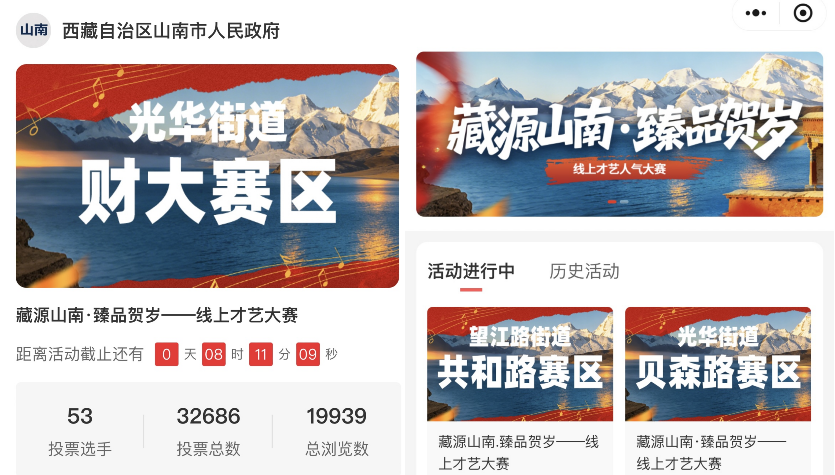 活动覆盖成都市14个重点社区,联动上百个社区协会、文化艺术团体,开展以“藏源山南”为主题的线上文化才艺互动赛事。通过小程序平台组织线上才艺大赛,并设置投票获取折扣福利等机制激发居民参与热情和成都首发推广价值;累计线上参与人次100万+,互动领取线上年货节产品6,523份,成功兑换订单296笔,用户直接下单1万余元,初步建立可持续运营的 “山南—成都”文化交流与消费转化机制“悦享镇达一刻钟”平台,有效验证了“文化引流—兴趣转化—消费落地”的闭环路径。