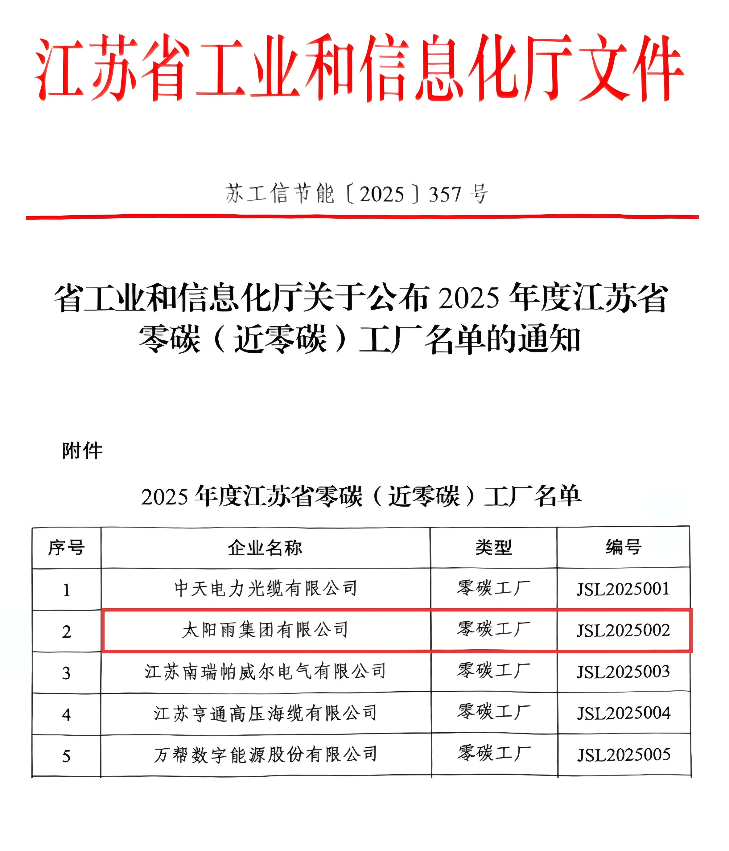 近日,江苏省工业和信息化厅正式公布《2025年度江苏省零碳(近零碳)工厂名单》,太阳雨集团有限公司成功入选,成为全国首批、行业首家以清洁热力、电力、算力为核心技术路径的零碳工厂。这一认定不仅标志着太阳雨从“绿色制造”迈向“零碳引领”,更彰显了其26年来在太阳能光热、空气能热泵等清洁能源领域研发与产业化上的深厚积淀,已转化为推动制造业低碳转型的系统性解决方案。